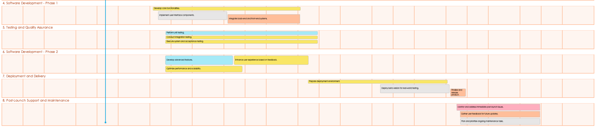 - Fill out the remaining five sections pertaining to development and deployment: Software Development Phase I, Testing and Quality Assurance, Software Development Phase II, Deployment and Delivery, and Post-Launch Support and Maintenance.