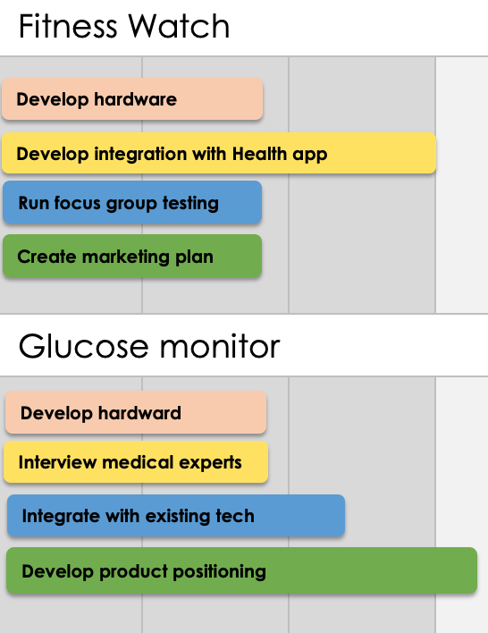 - Repeat steps 3 and 4 for each product in your portfolio. Now you have a high-level schedule of how you plan to accomplish multiple product development projects at once.