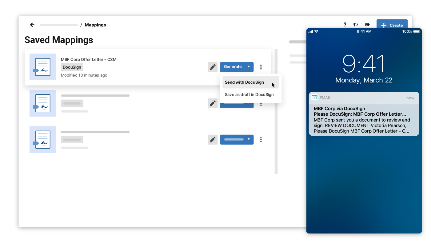 Preparing and signing custom documents across disconnected platforms is time-consuming and susceptible to costly errors, particularly as the number of documents goes up. And once the documents are out for signature, it’s hard to keep tabs on their different statuses and act accordingly.