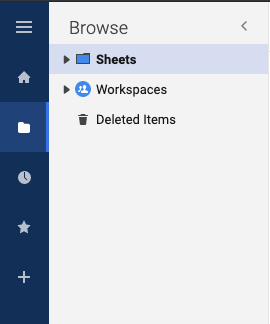 We have updated the name and icon for the desktop app’s homepage to better reflect that it is used for browsing your workspaces, folders, and Smartsheet items. The new name is Browse, and the icon in the navigation menu is now a folder. The location and functionality of the page is not changing in any way at this time.