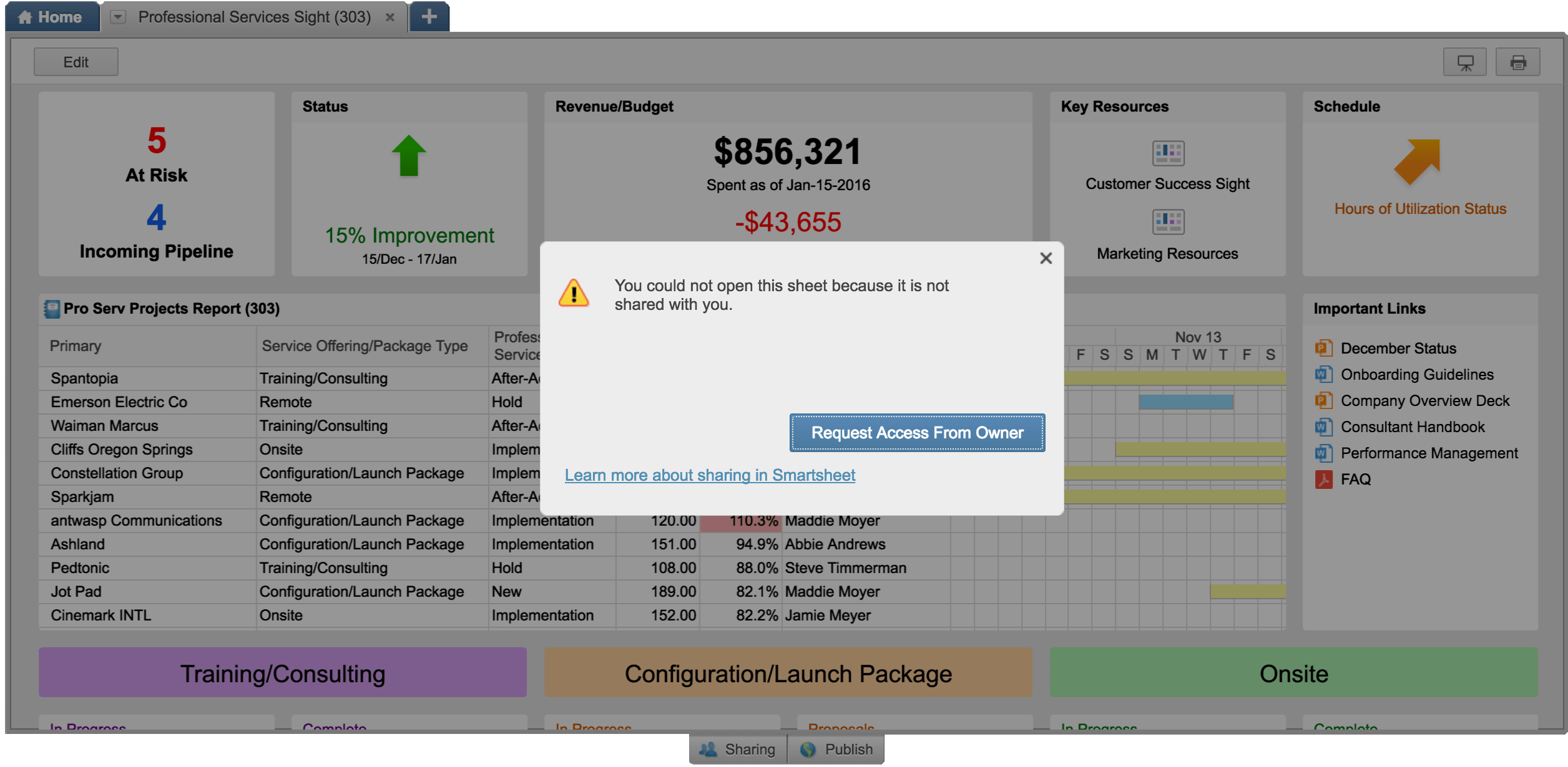 Smartsheet Accelerators are pre-built solutions that rely on best practices and rapid deployment to get scalable processes up and running quickly.