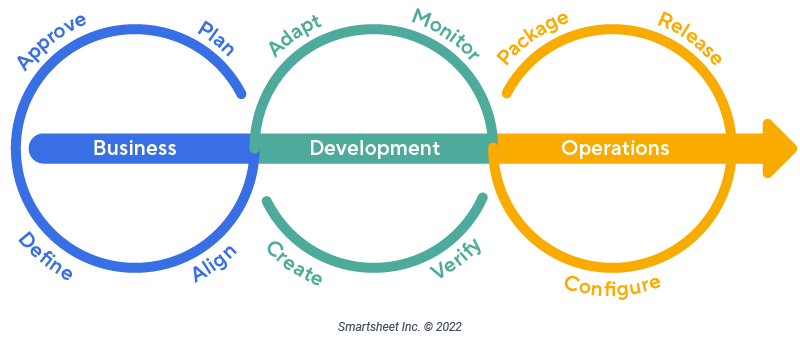 • Business, Development, and Operations (BizDevOps): Created for software development and formerly known as DevOps, BizDevOps is a framework to bring together cross-functional teams to produce outputs quickly, respond efficiently to changing requirements, and maximize company value. BizDevOps encourages teams to work together more closely than many traditional software development practices and helps to remove silos by integrating departments into all levels of the software development process.