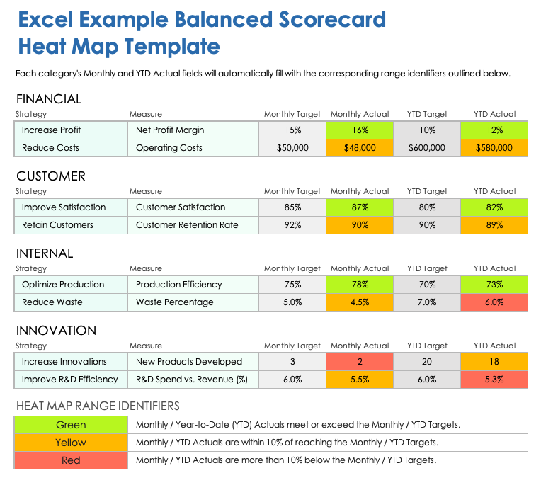 Download the Example Balanced Scorecard Heatmap Template for Excel