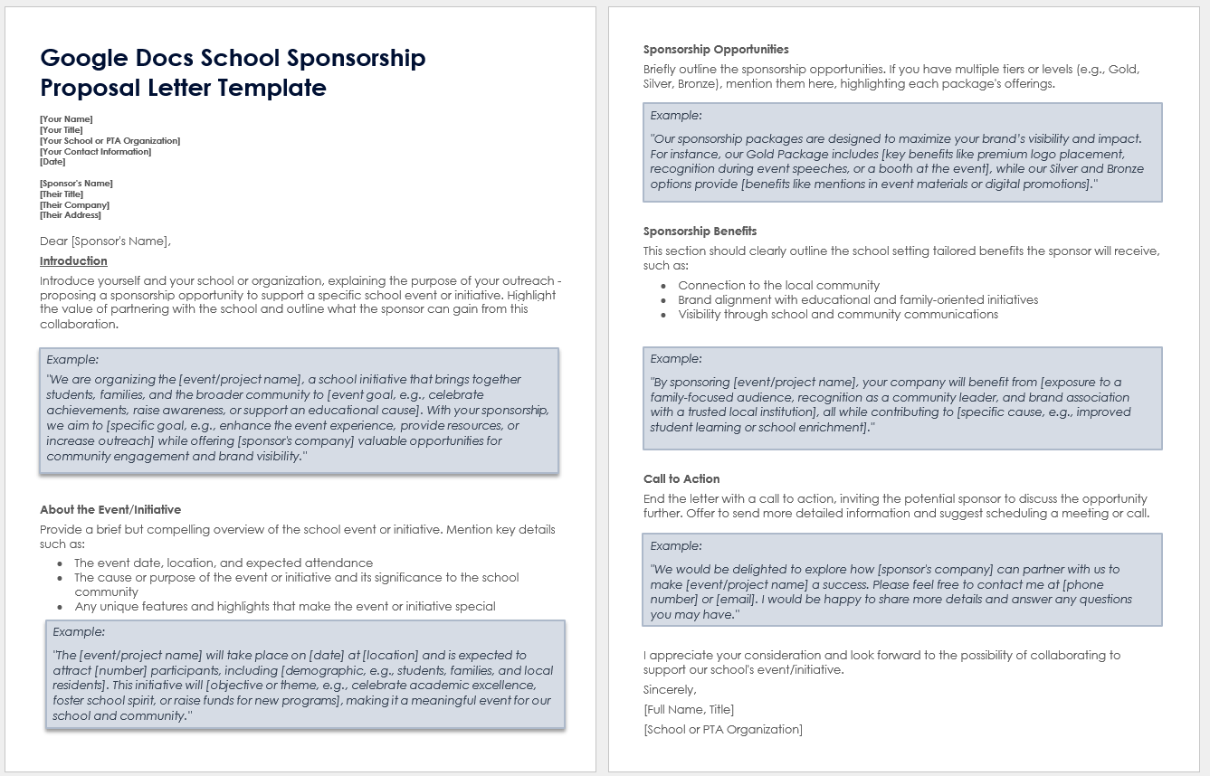 Google Docs School Sponsorship Proposal Letter Template
