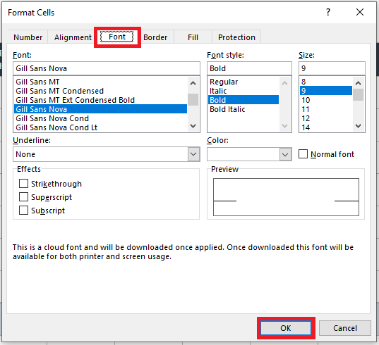- Repeat these steps to change the font in all desired cells.