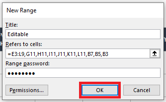 - Change the Title of your new range, if desired, and create and enter a password in the Range Password field. Then click the OK button.