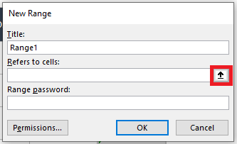 - Click the Up Arrow button in the New Range window.