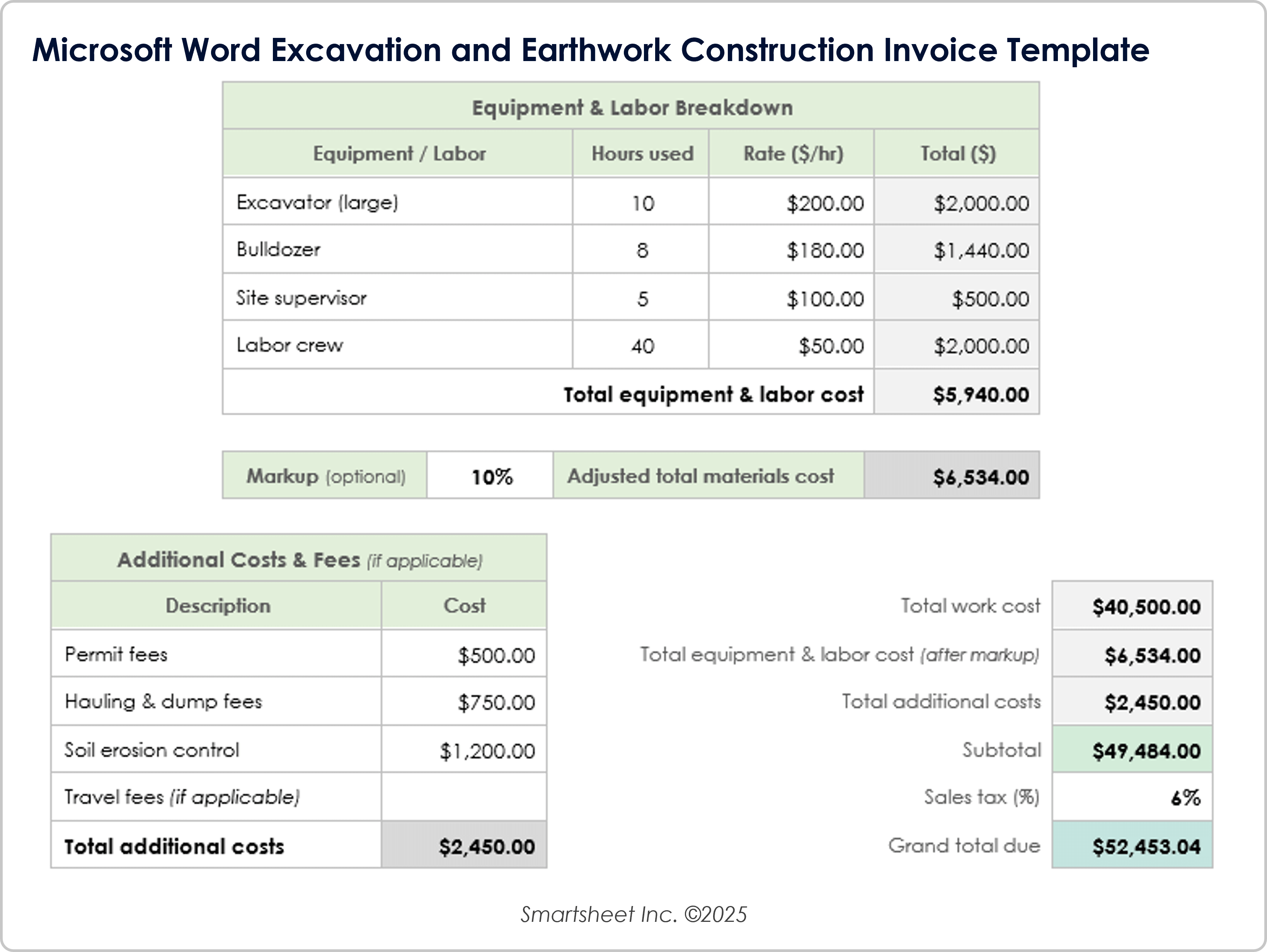 Download the Excavation and Earthwork Construction Invoice Template for Microsoft Word