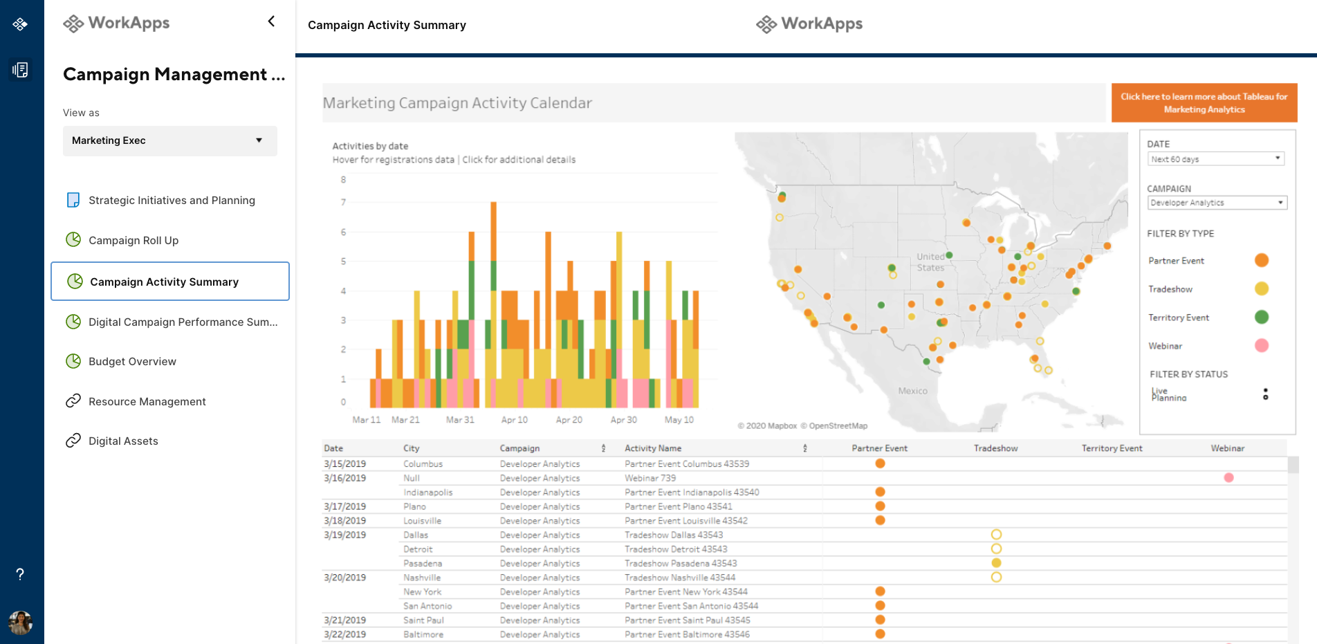 Smartsheet for Marketing delivers a single platform to orchestrate all your marketing work, technology, and people with closer alignment to the rest of the business and the security and governance capabilities required by IT. With Smartsheet, your marketing team can create the processes, workflows, and insights needed to move faster with confidence, deliver better customer experiences, and achieve business outcomes at scale.
