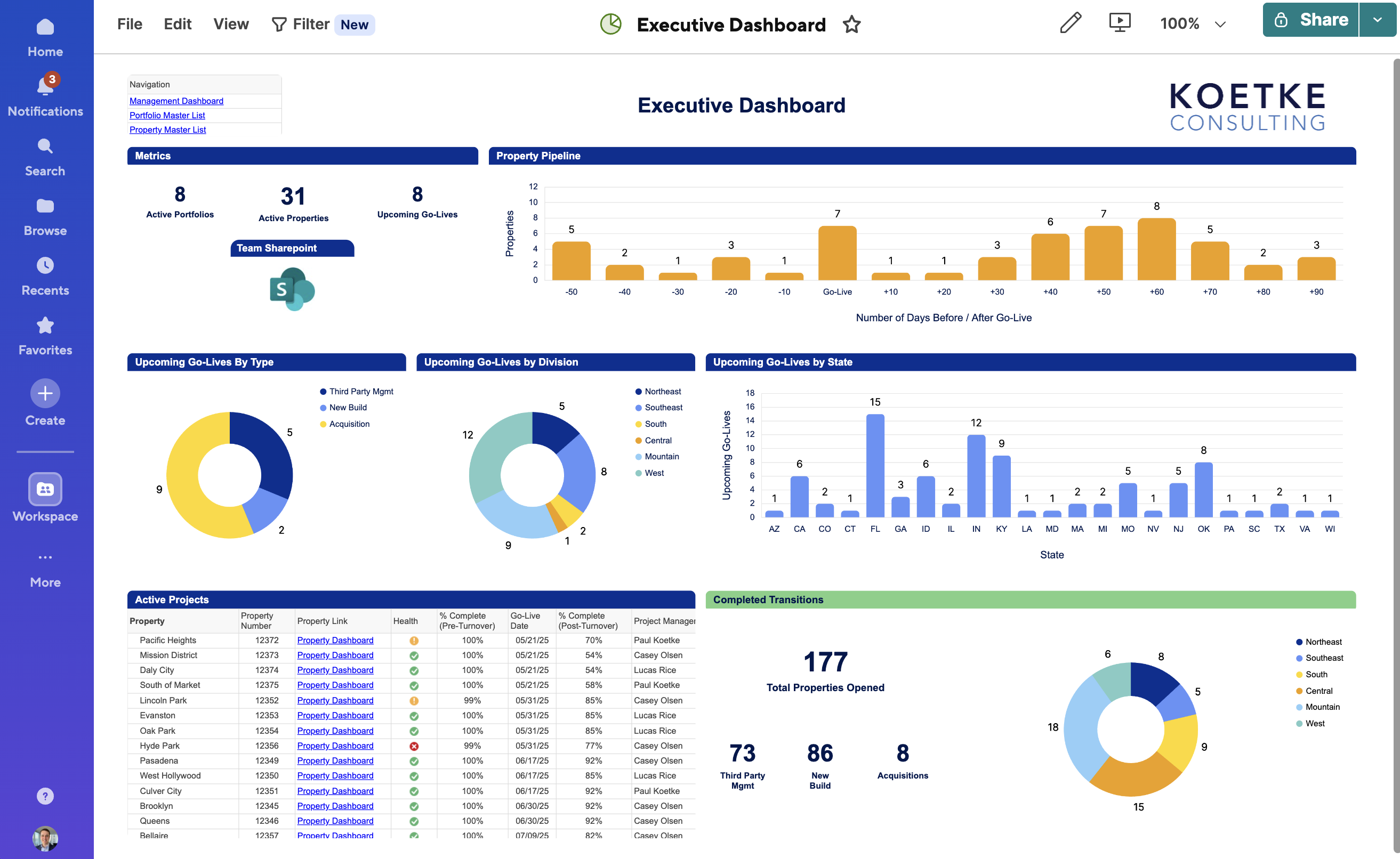 Companies growing through real estate expansion face a costly challenge: every day a new location sits unopened represents up to $10,000 in lost revenue. With 50+ properties in various stages of acquisition, permitting, construction, and launch, portfolio operators struggle to maintain visibility, standardize execution, and hit aggressive opening timelines across their pipeline.