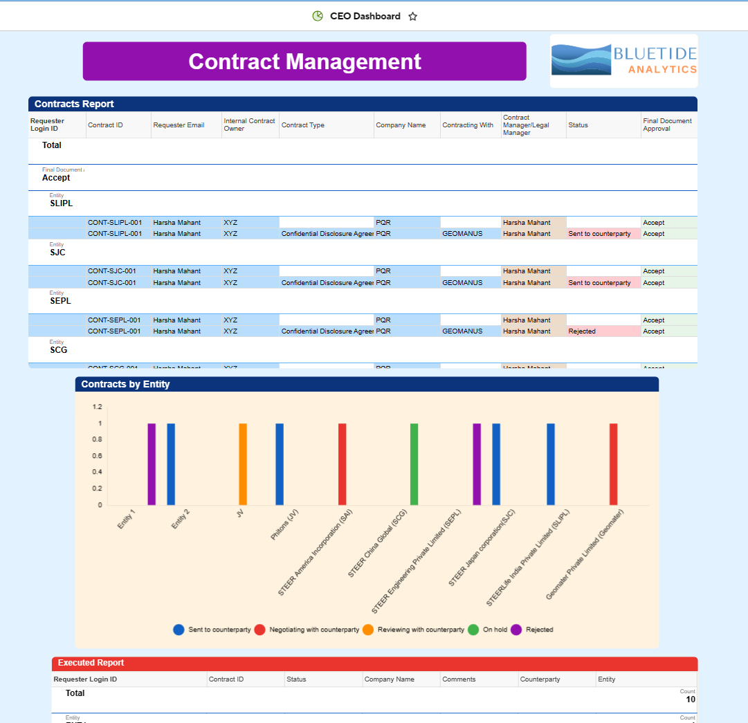 Our custom contract management system empowers organizations to streamline and automate contract requests, validity tracking, negotiation status, and redline changes, fostering enhanced collaboration and reducing operational complexities. Experience efficient contract handling, greater visibility, and improved decision-making with our tailored solution.
