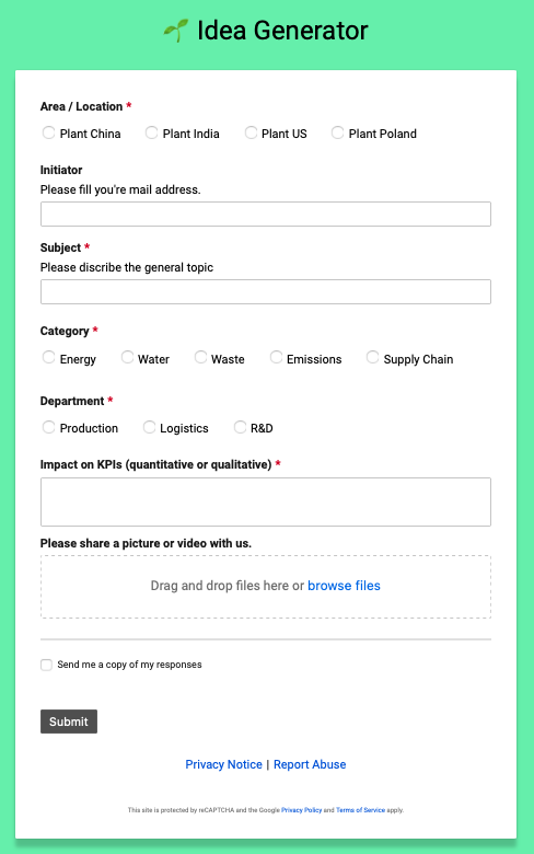 GreenGenius transforms sustainable idea management for manufacturing companies. Our Smartsheet-based solution streamlines processes and enhances collaboration, enabling businesses to effectively drive innovation and sustainability at scale.