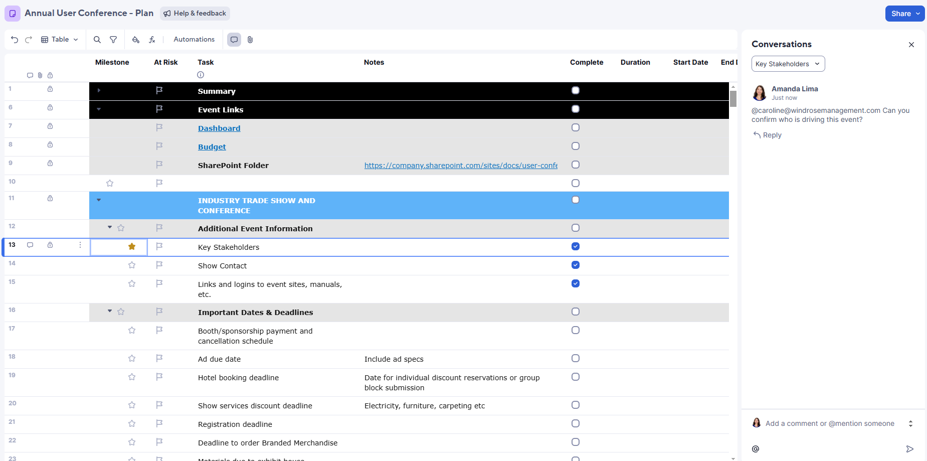 Plan, deliver, and track insights on events and webinars company-wide through standardized schedule, budget, and metric templates—all with your event assets at your fingertips.