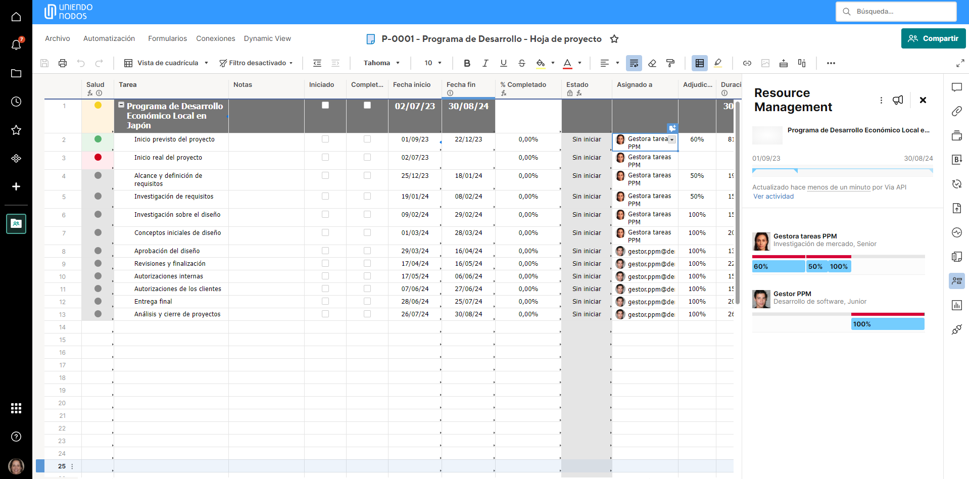 Contacta con Uniendo Nodos para tener acceso a una prueba limitada. Esta contendrá todo el funcionamiento de la solución de gestión de Portfolio con las herramientas premium de Smartsheet. Para utilizar esta solución debes tener contratado Resource Management. Pero existe la posibilidad de acceder a esta sin esta aplicación.
