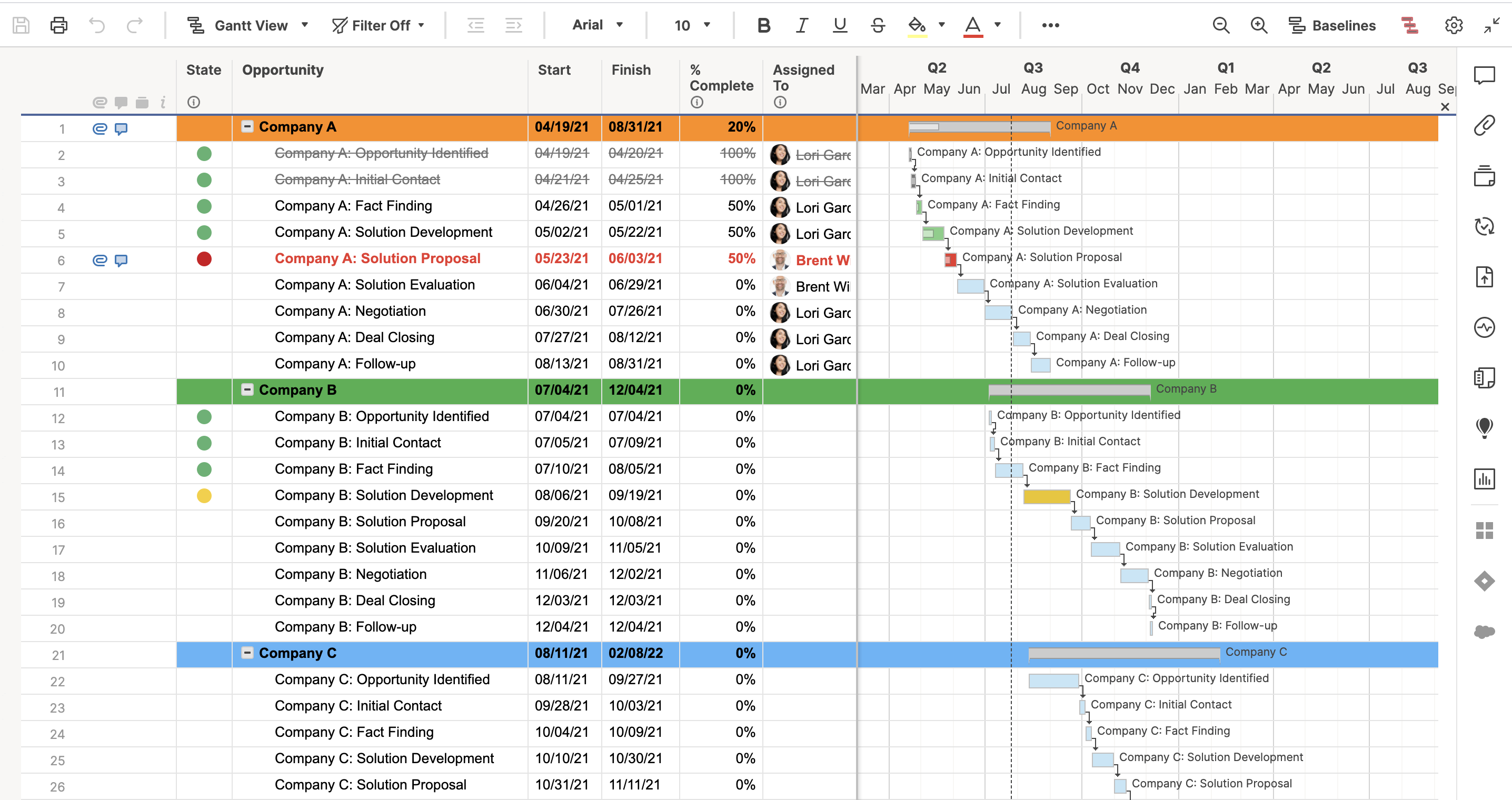 Manage multiple sales opportunities across all stages of the sales process, gaining visibility into progress and identifying at-risk opportunities to quickly mitigate