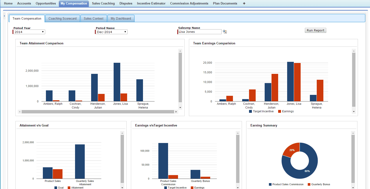 Overview: This compensation calculation app lets sales managers build custom dashboards on the fly while letting sales reps view their real-time commission data and build what-if scenarios to determine potential future compensation.